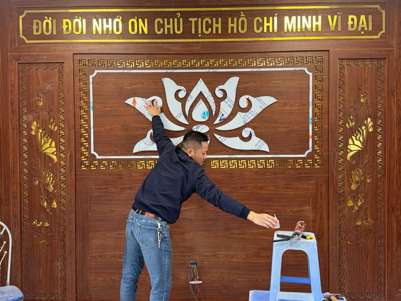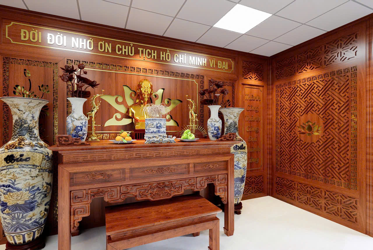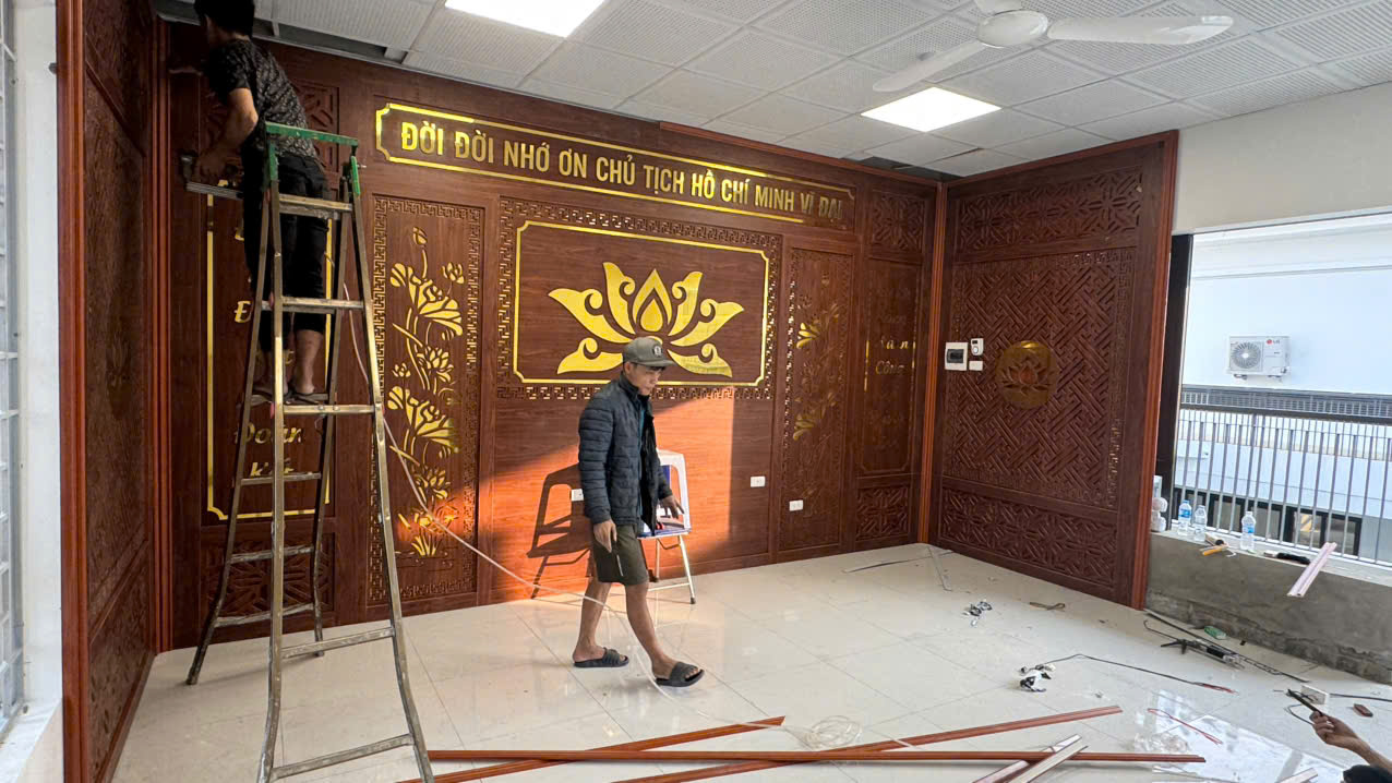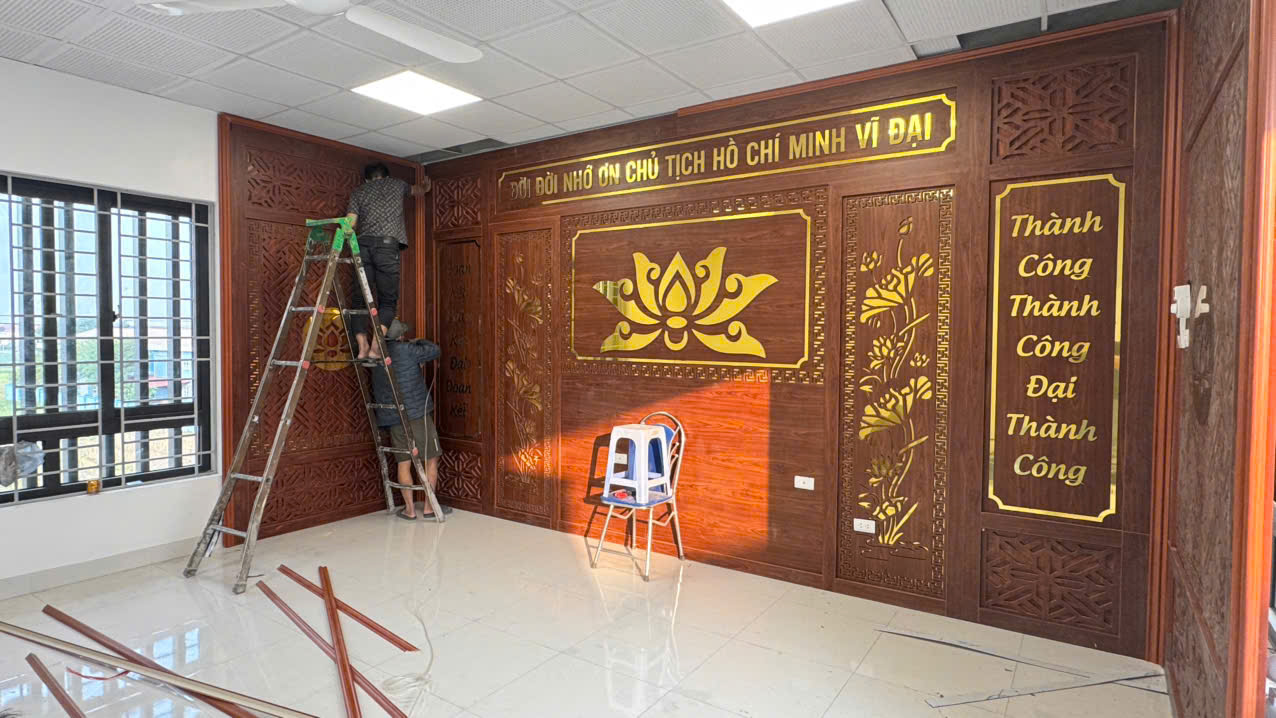 Công trình thi công vách CNC phòng thờ Bác Hồ tại BCHQS xã Thư Lâm